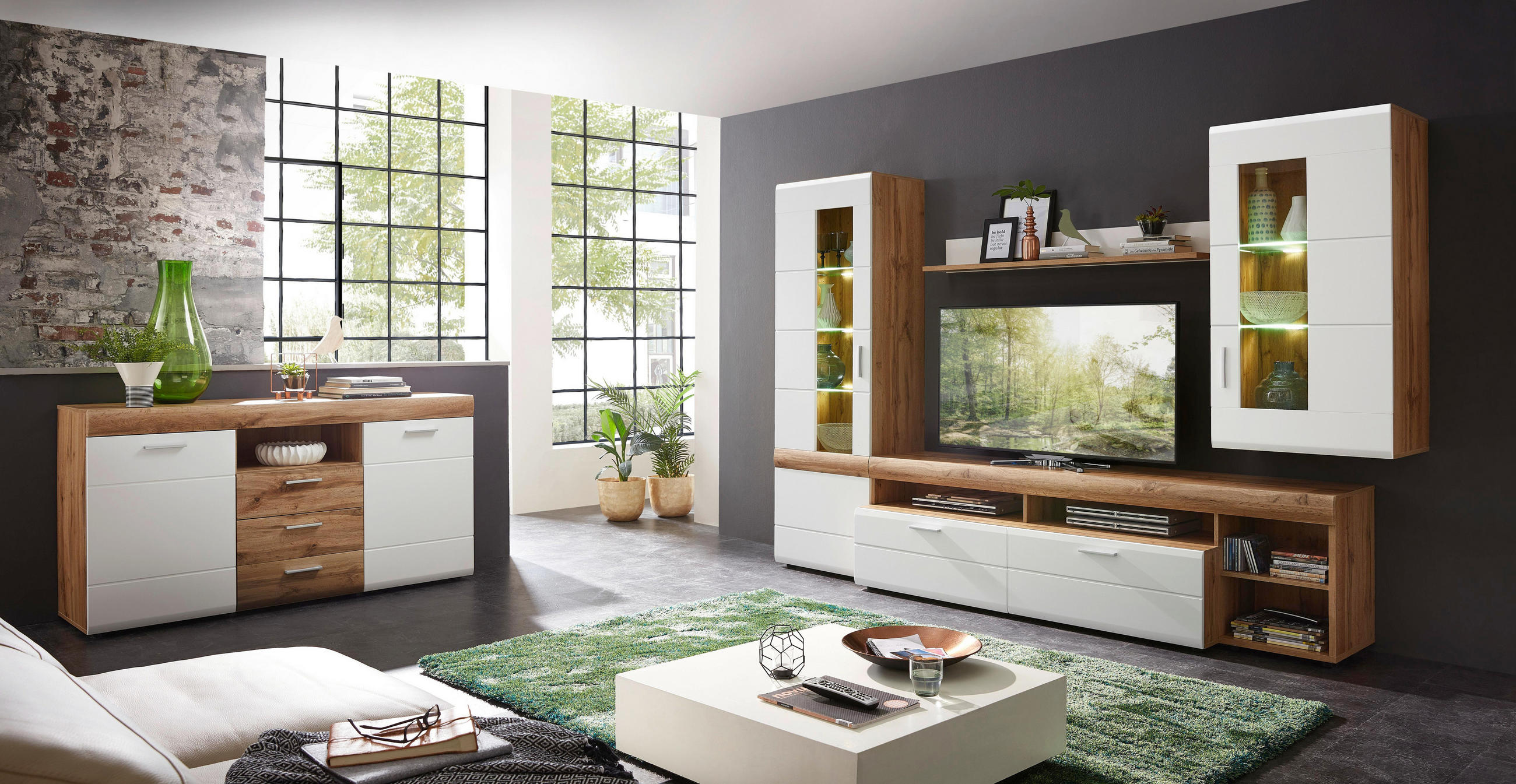 Wohnwand Mit Viel Platz Fur Tv Gerat Online Kaufen 20 Qm Wohnzimmer Mit Kueche